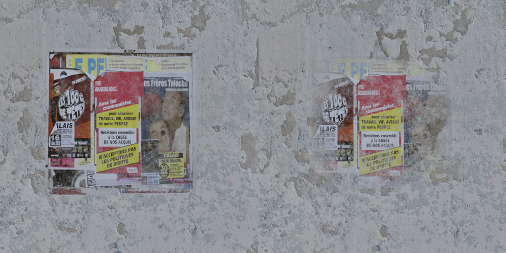 - Blend: blending of the dirt with the original texture, because this is a world space parameter, depending on the sacle of your scene you might need to play around with low parameters. IMAGE BLEND
